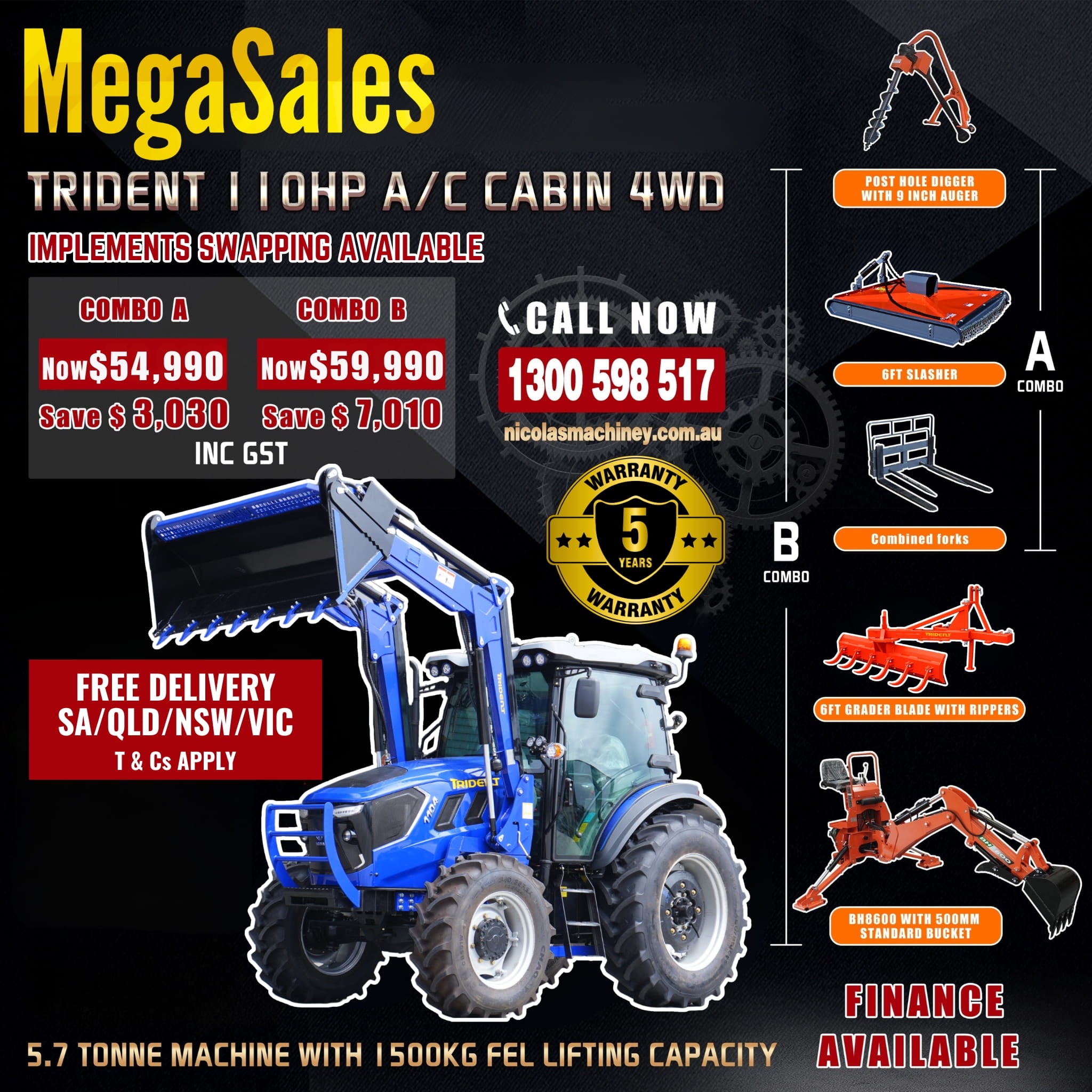 Nicola's Machinery directly oversees and manages all four branches. We offer immediate delivery for all tractors and implements nationwide, typically arriving within one to two weeks, depending on your location.
