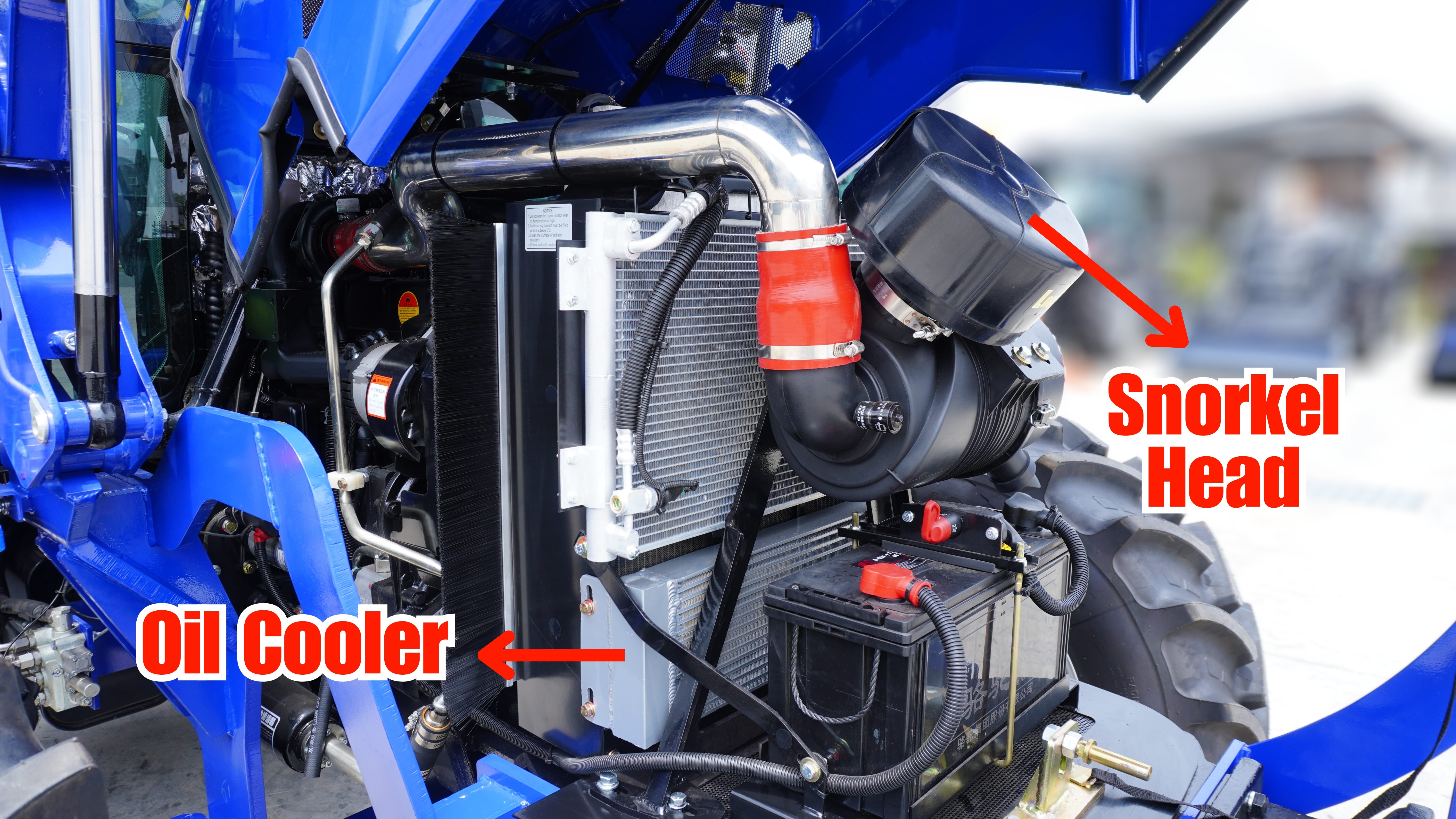 It takes a certain amount of weight for a tractor to transfer one HP of energy from the engine to the ground. If you have too little weight, your purchased HP isn't performing optimally. We designed a balanced tractor with heavy front and rear weight to achieve effective grip in the field, and in return, our tractor has more front-end lifting capacity and tractor pulling capacity.