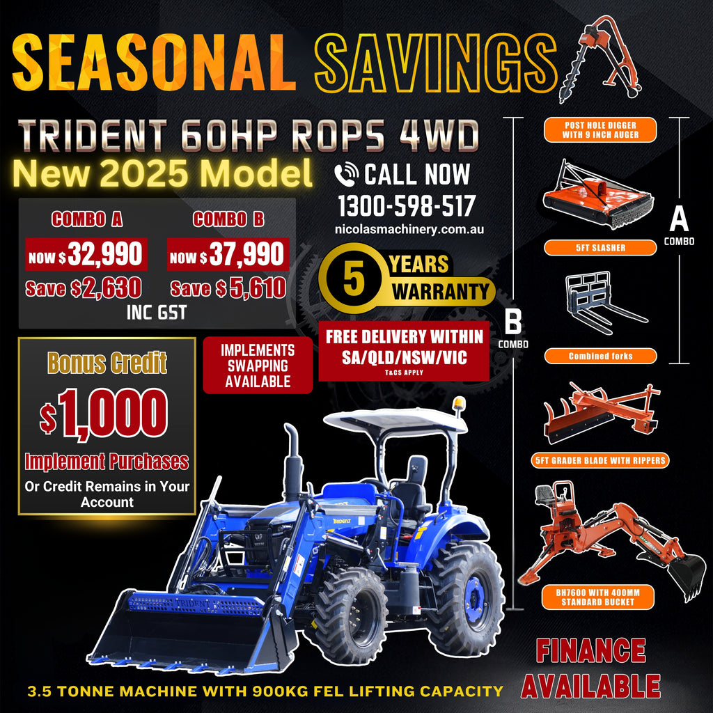 Discover Nicola's Machinery's range of reliable tractors and farm equipment, ideal for hobby farmers and small acreage operations. Backed by expert advice and nationwide delivery.