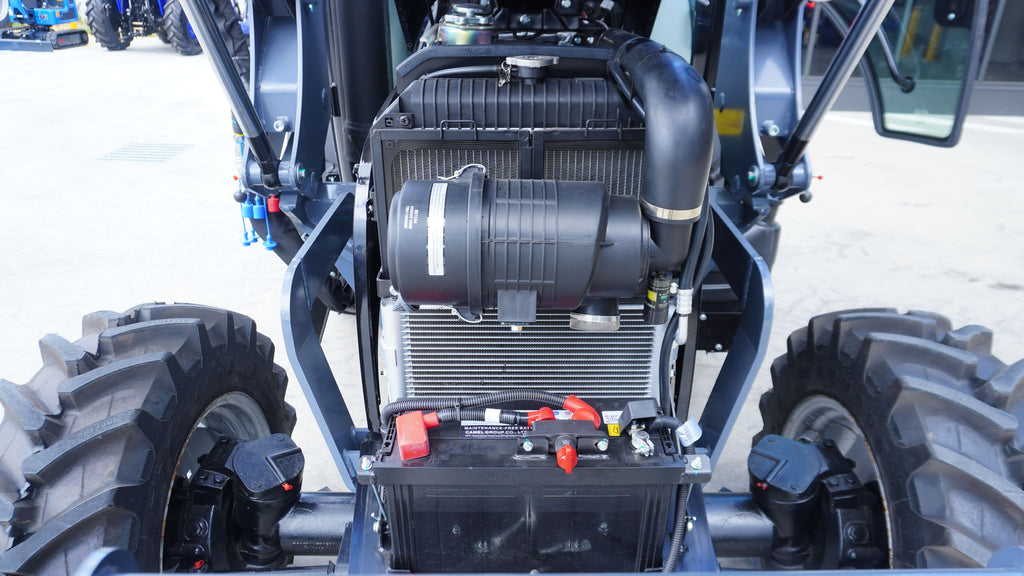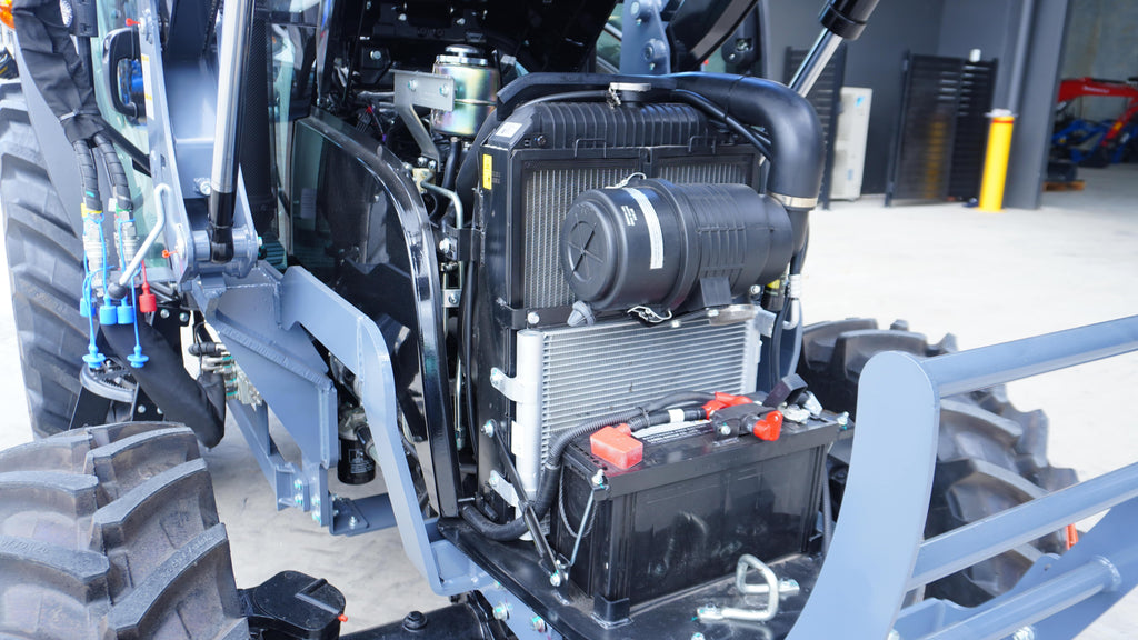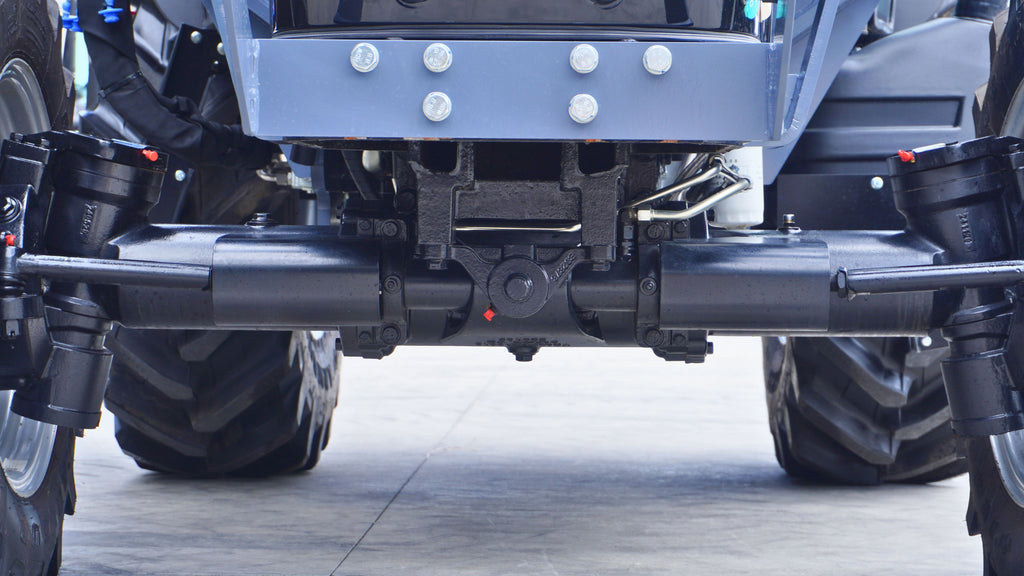 It takes a certain amount of weight for a tractor to transfer one HP of energy from the engine to the ground. If you have too little weight, your purchased HP isn't performing optimally. We designed a balanced tractor with heavy front and rear weight to achieve effective grip in the field, and in return, our tractor has more front-end lifting capacity and tractor pulling capacity.