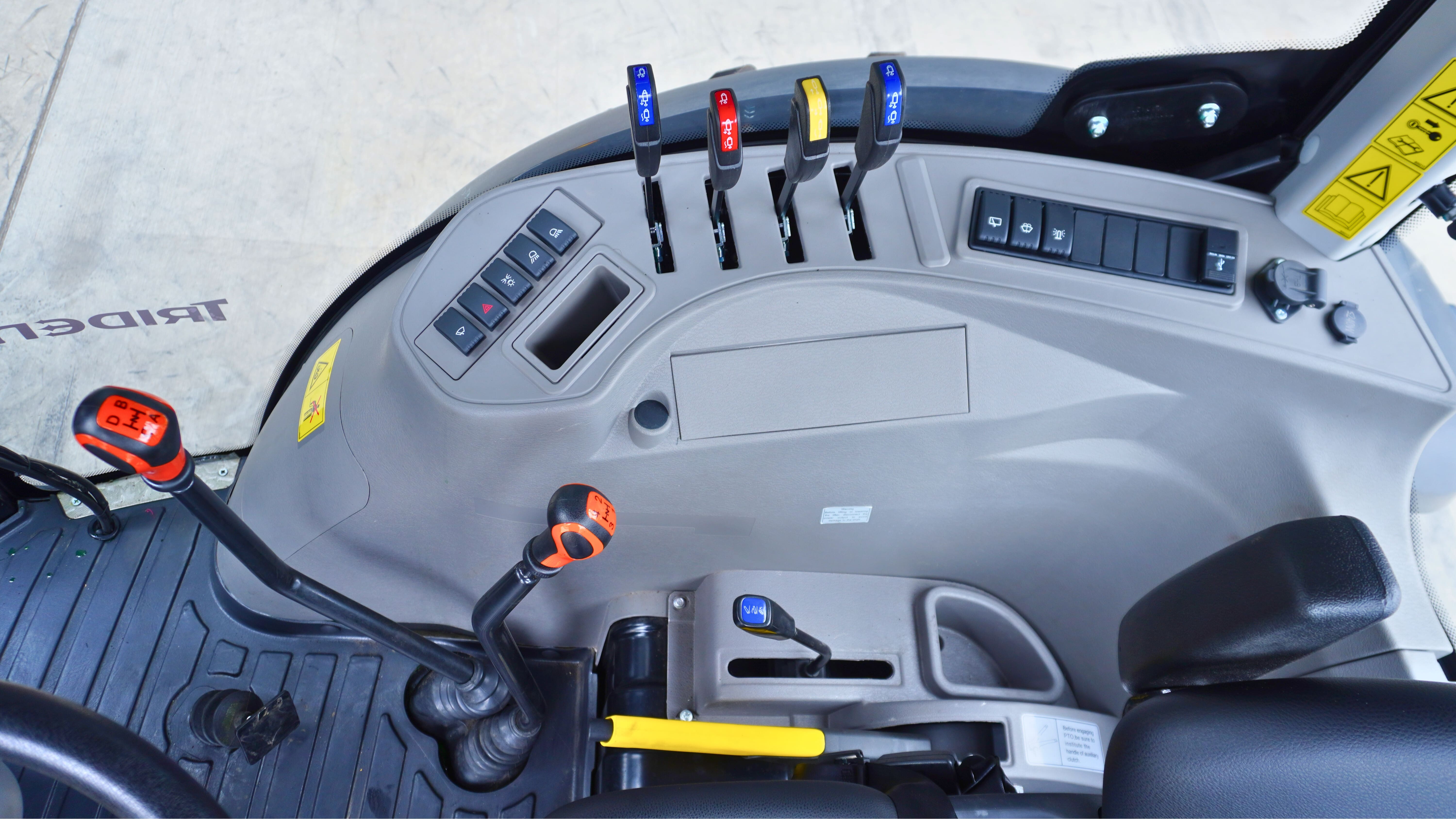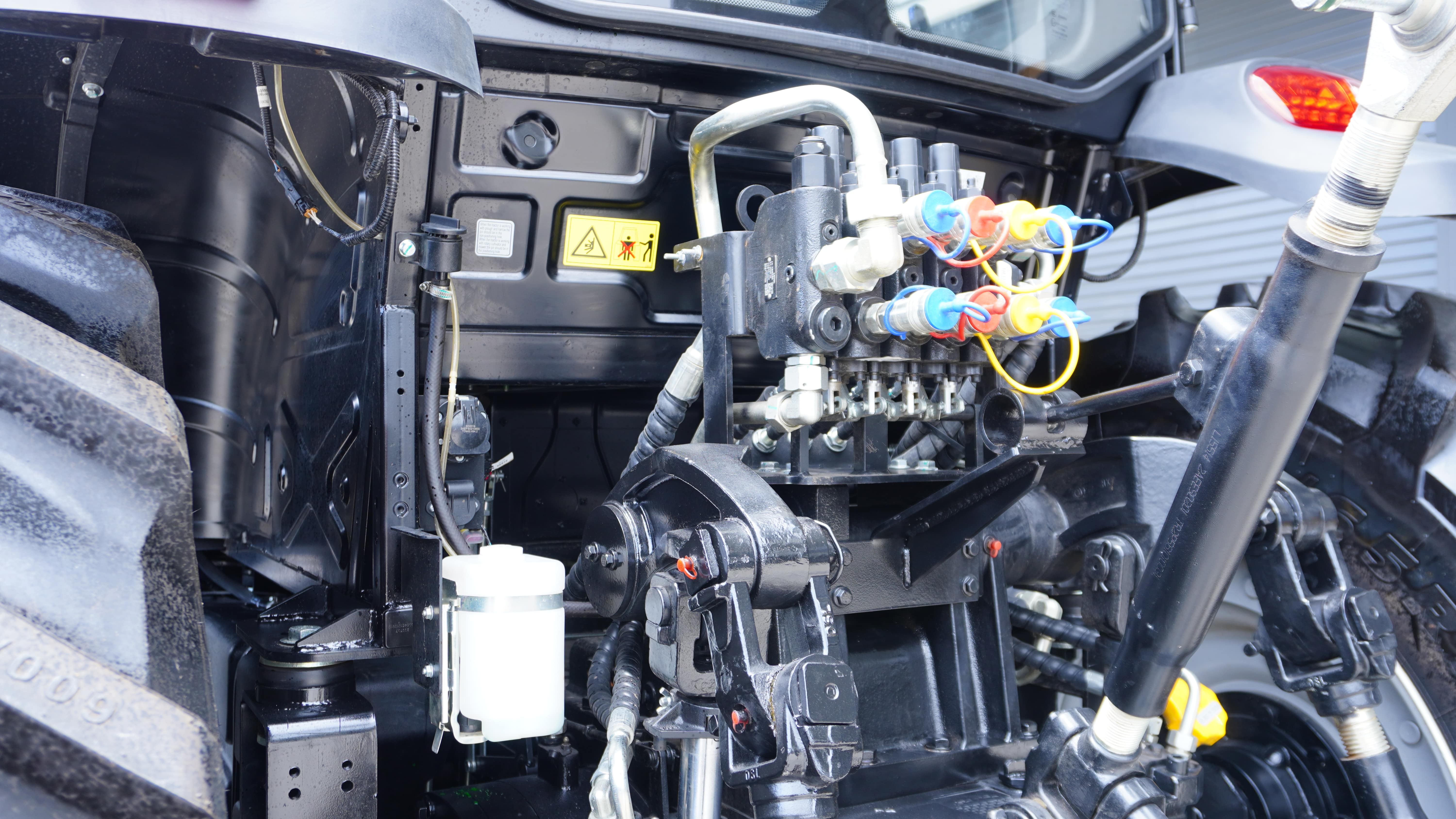 The rear 3PL features four hydraulic remotes for simultaneous control of multiple implements, plus a rear external lever for quick hitch adjustments from outside the cabin.