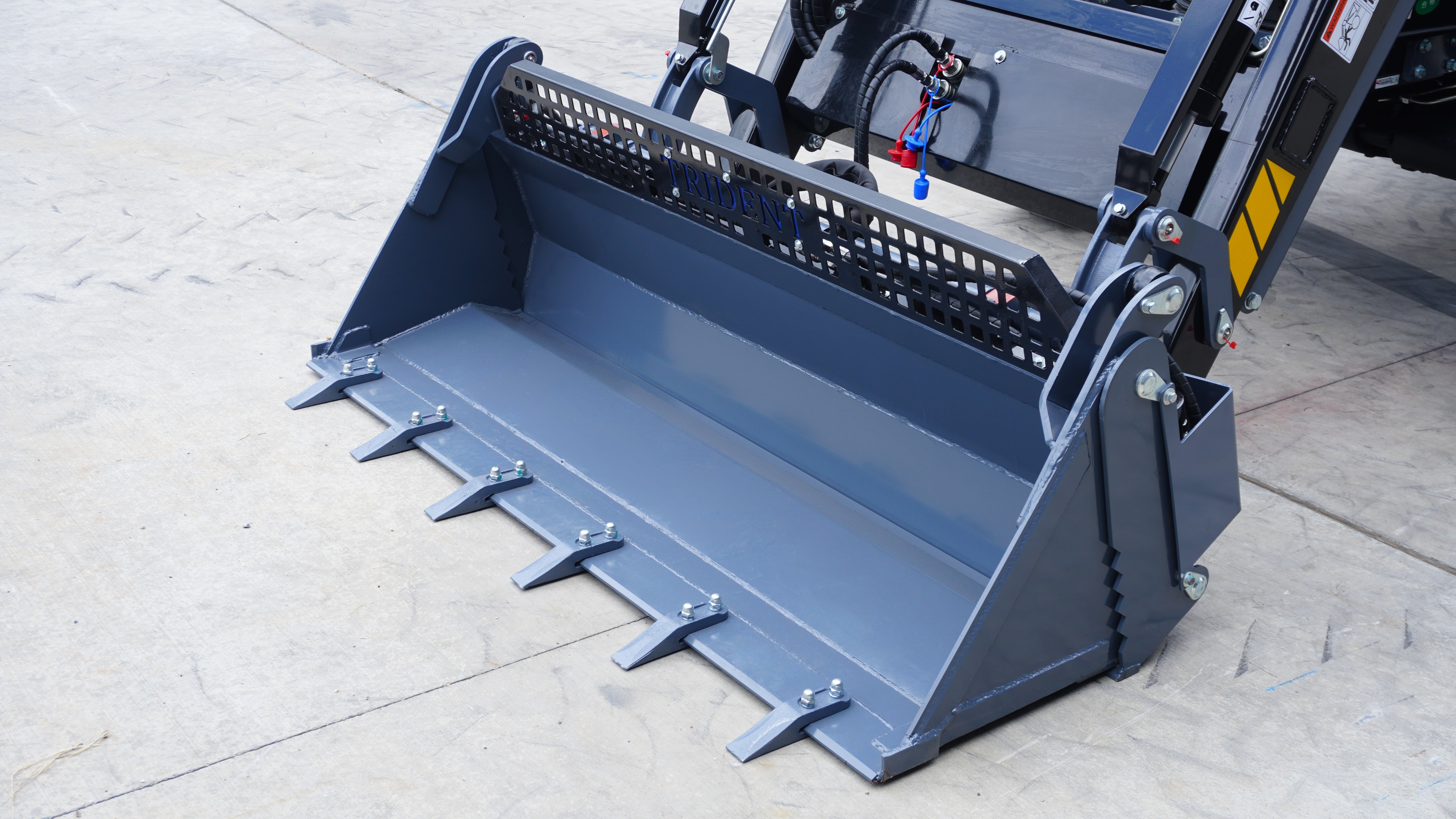 4-in-1 Bucket: Reinforced with a hungry board and removable teeth, it efficiently penetrates materials.