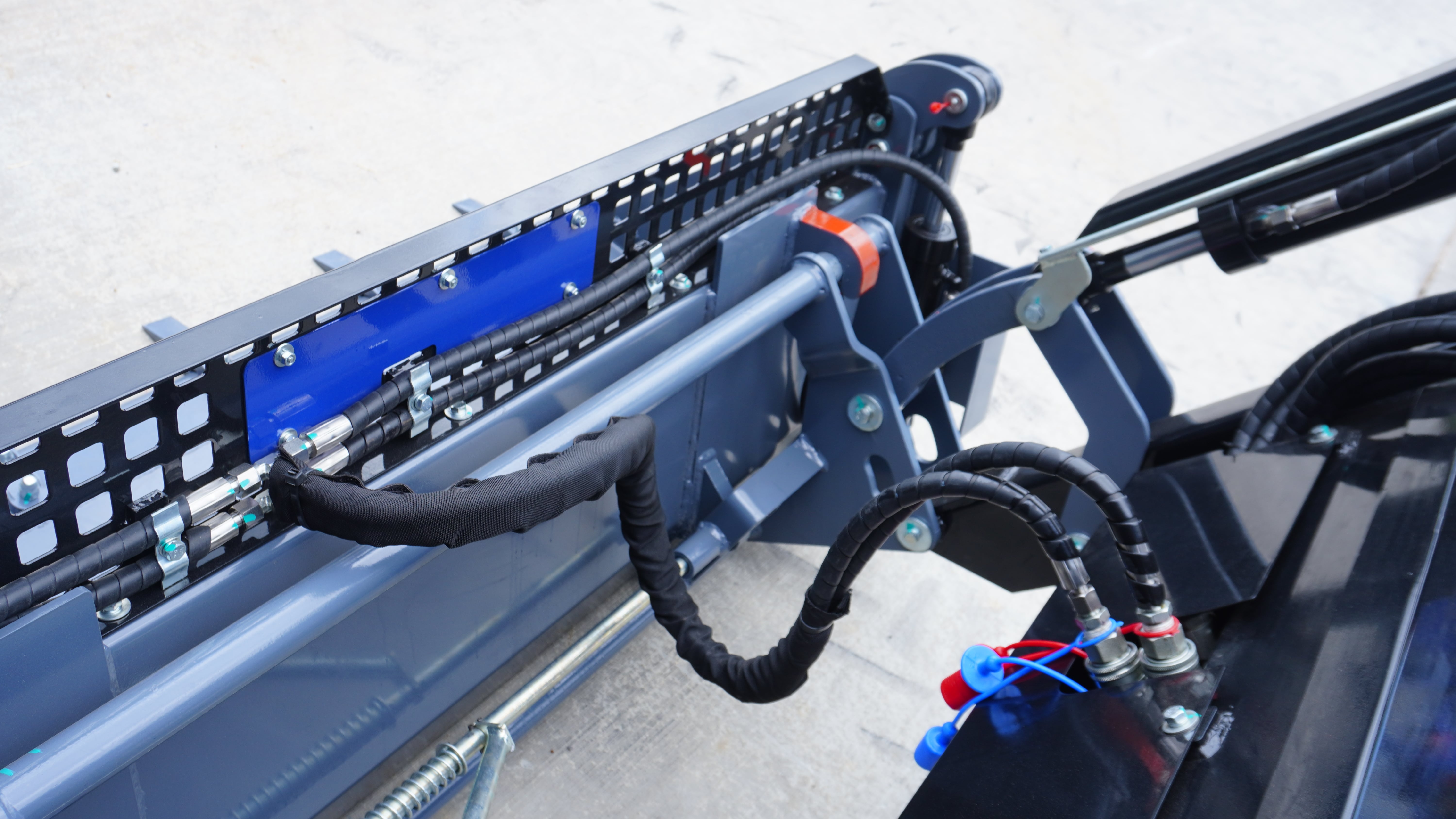 The hydraulic 3-point linkage includes a hydraulic down pressure function, a floating function, a trailer plug, and a swing drawbar.