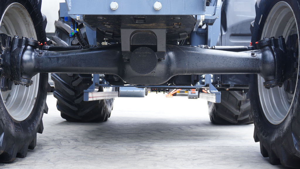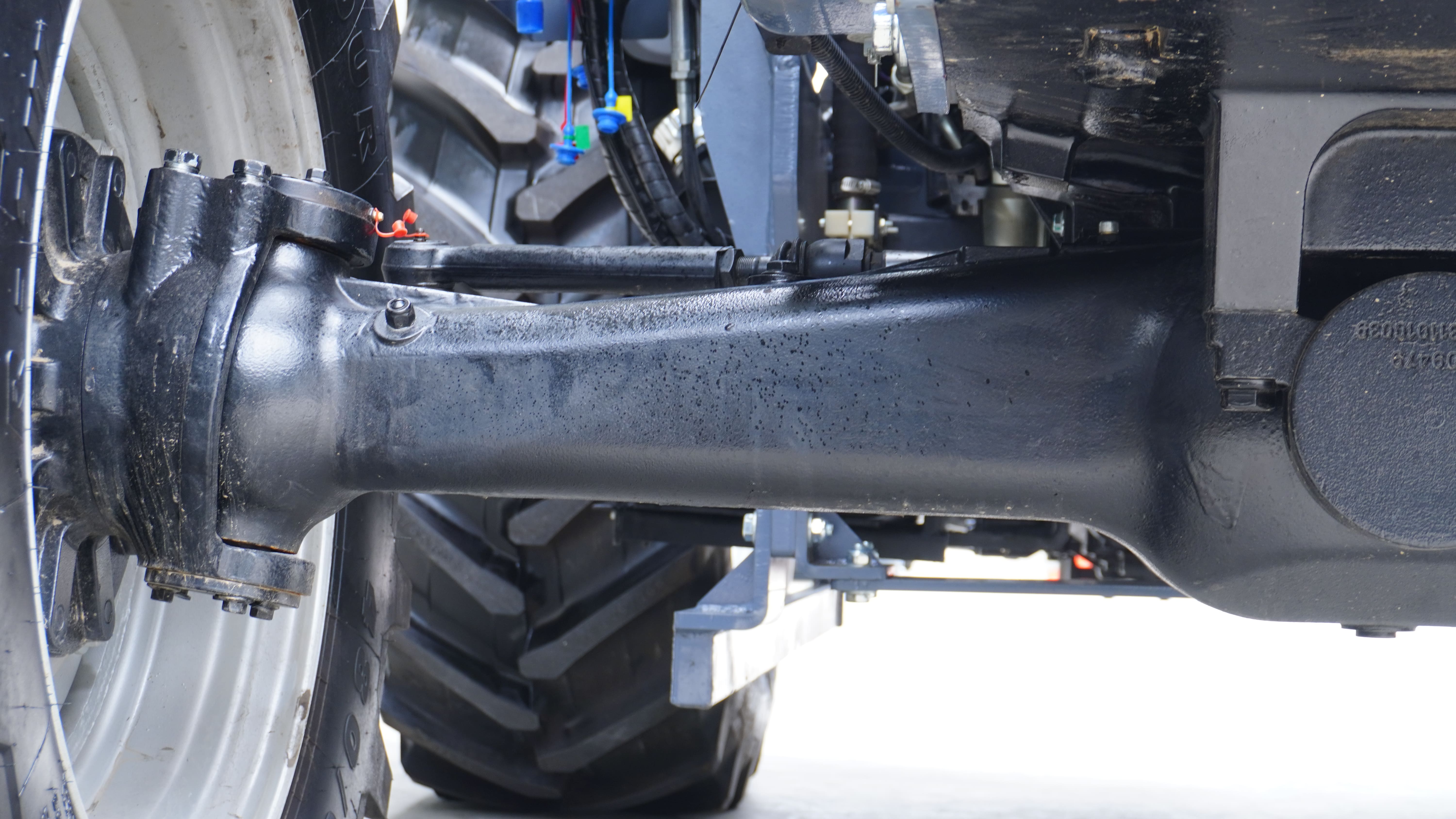 A robust rear axle enhances towing capacity, stability, and traction on uneven terrain, enabling handling of heavier implements.