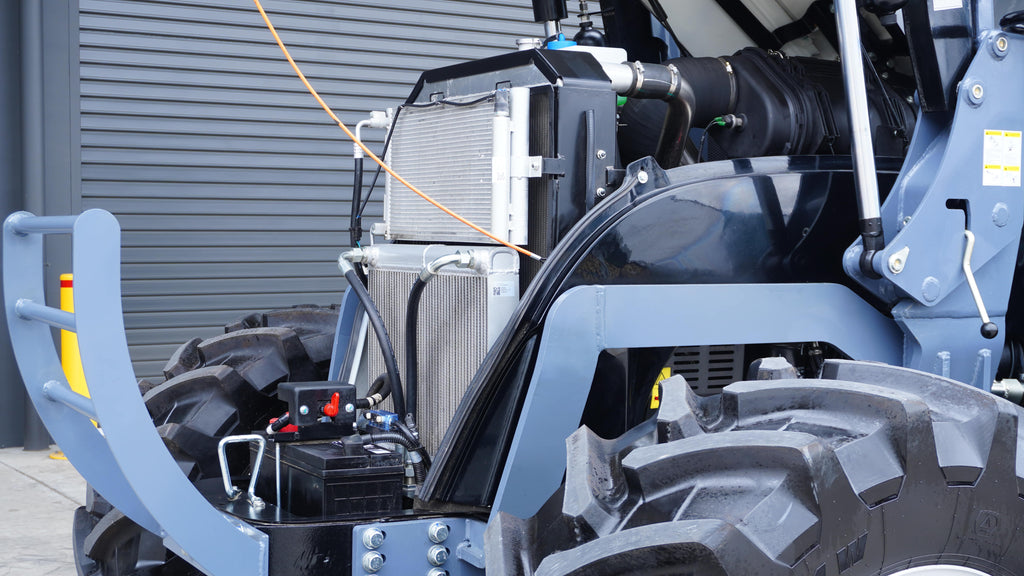 It takes a certain amount of weight for a tractor to transfer one HP of energy from the engine to the ground. If you have too little weight, your purchased HP isn't performing optimally. We designed a balanced tractor with heavy front and rear weight to achieve effective grip in the field, and in return, our tractor has more front-end lifting capacity and tractor pulling capacity.